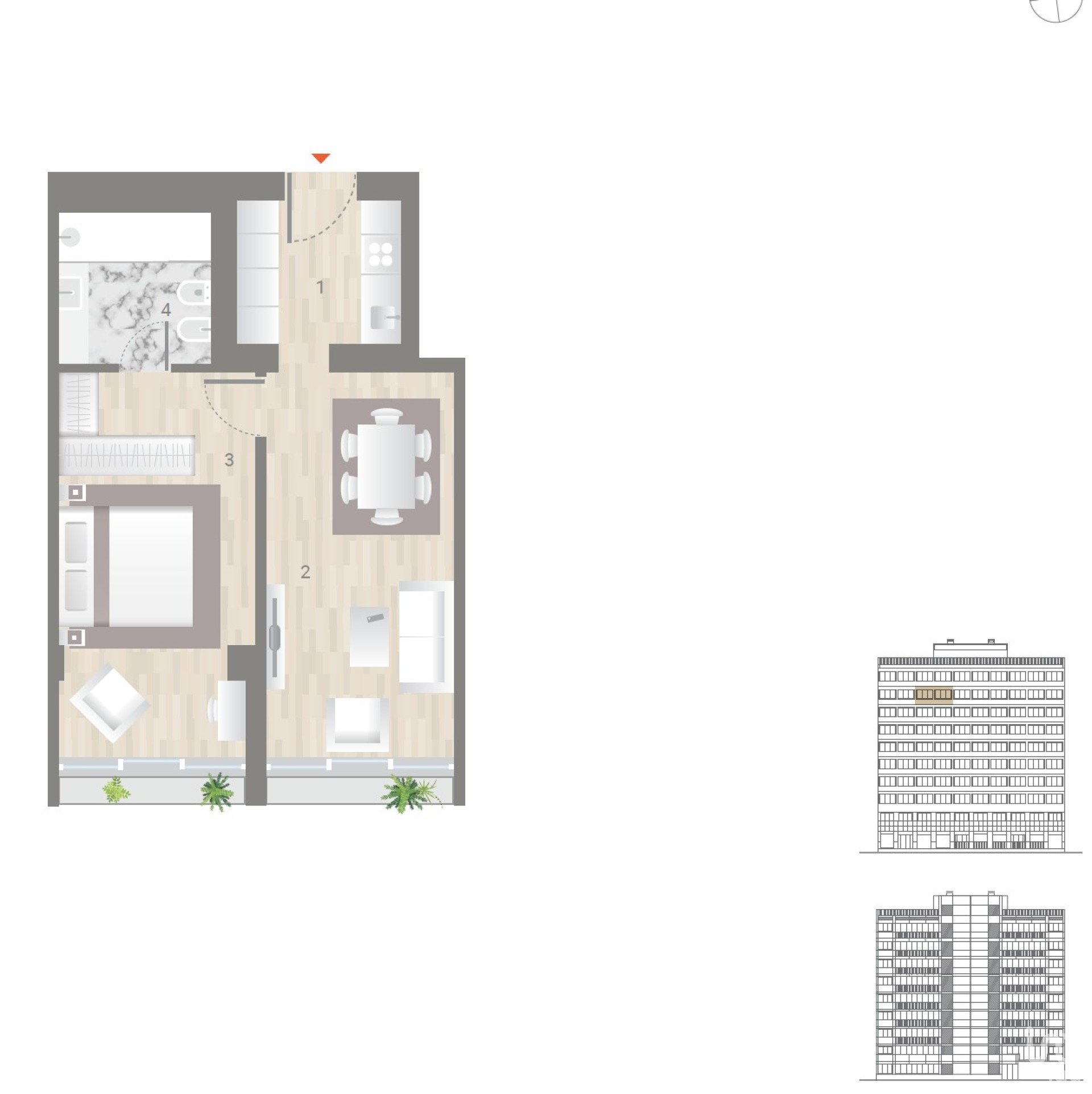 • Appartements T1, T2, T2+1 et T3 au design harmonieux et fonctionnel.