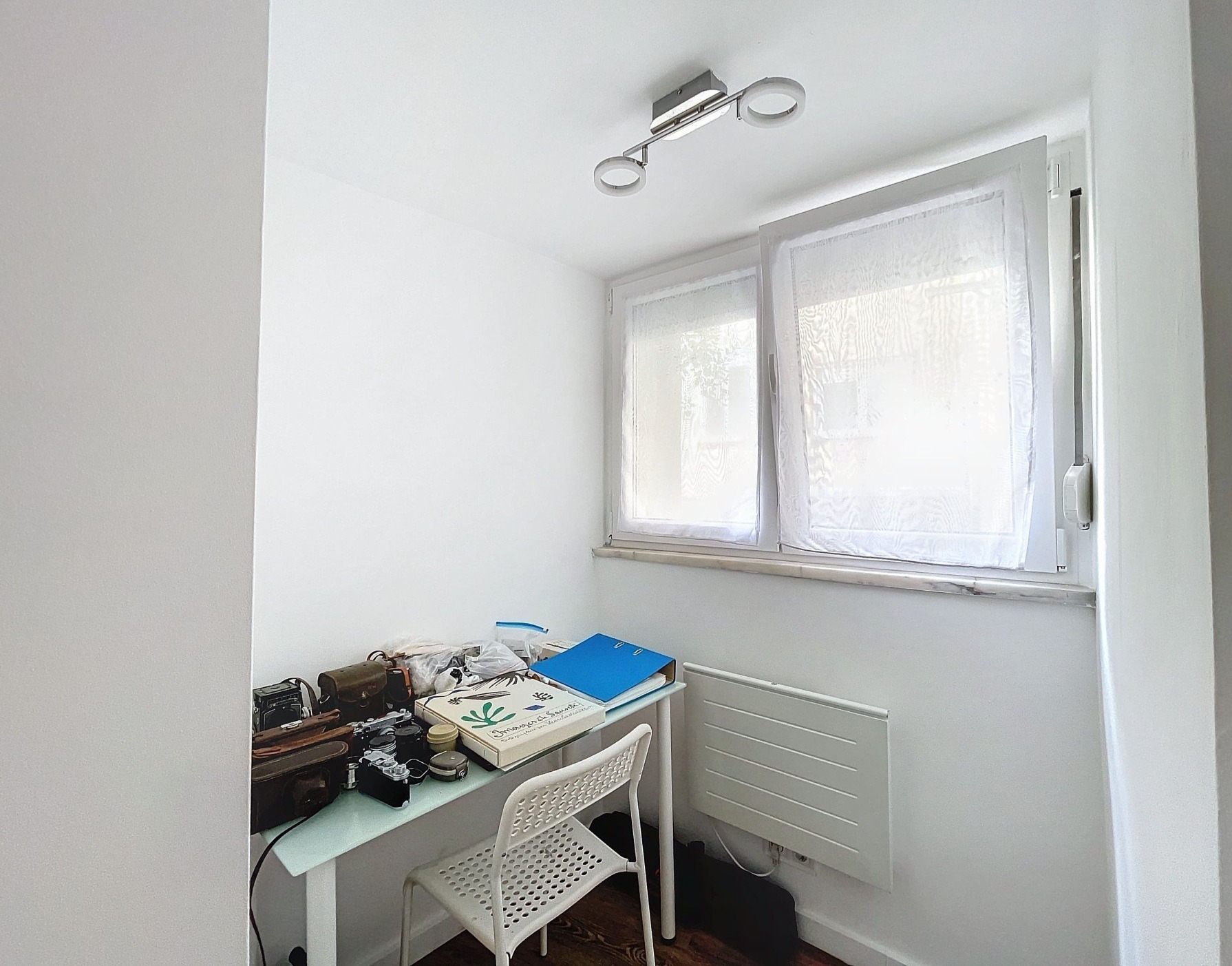 Il s’agit d’un T2+1 avec loggia, pouvant facilement être transformé en T3+1, moyennant une reconfiguration des espaces et la régularisation d’une partie non déclarée de la surface habitable (certaines pièces ne figurent pas actuellement dans le registre officiel).
