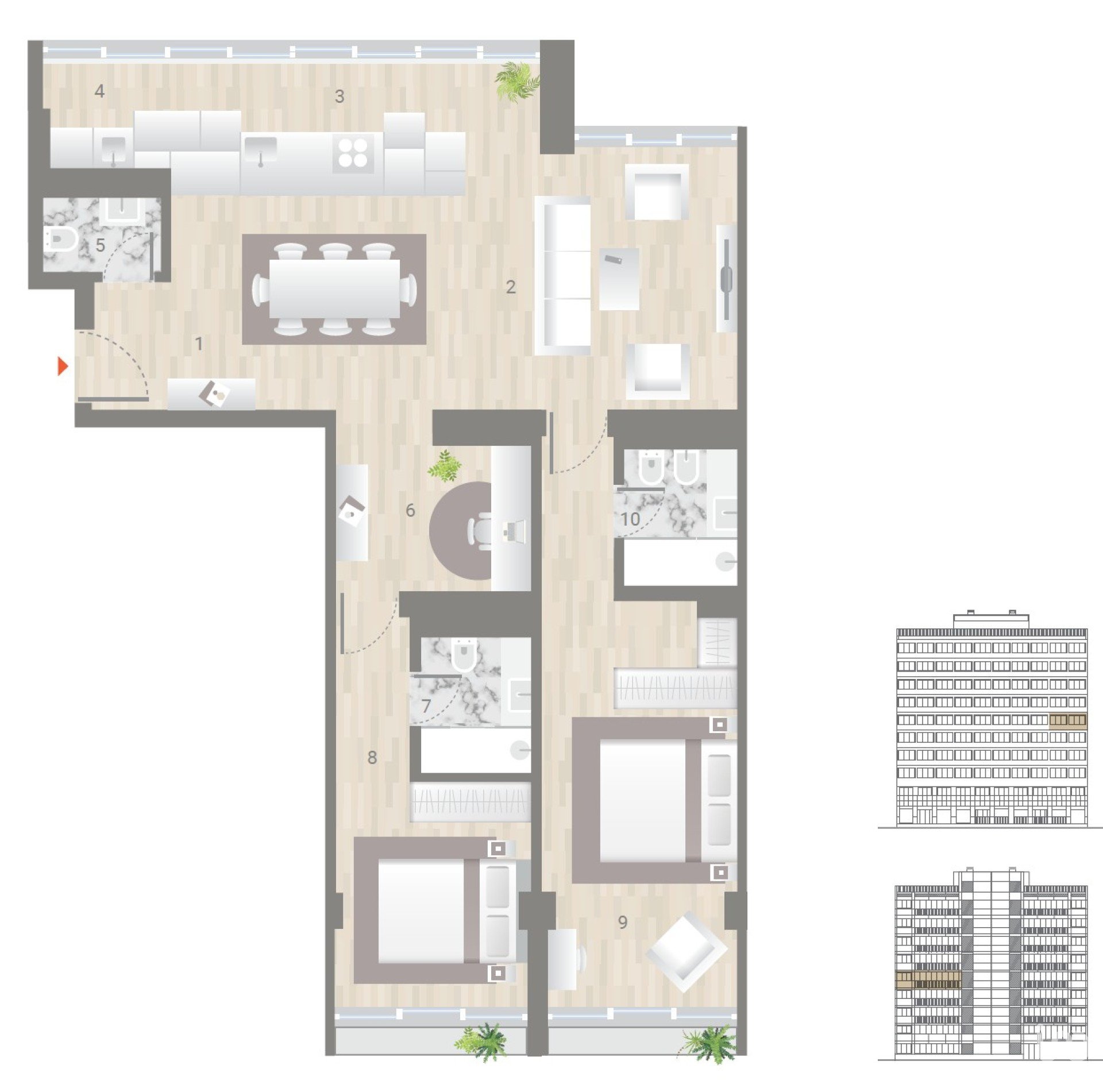 • Appartements T1, T2, T2+1 et T3 au design harmonieux et fonctionnel.
