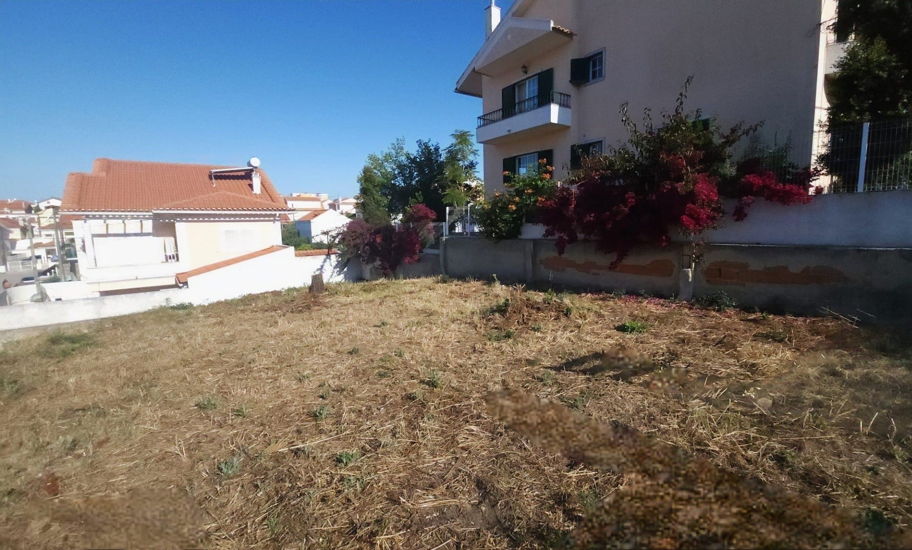 La vue à l’arrière donne sur le centre commercial Continente, et le terrain est proche de divers commerces et services. De plus, il est à quelques minutes des plages et des villes d’Almada et de Lisbonne.